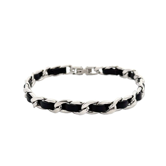 Men's Curb Chain Bracelet with leather, 7.5mm