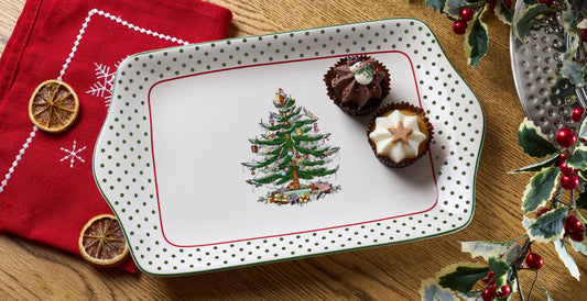Christmas Tree Polka Dot Dessert Tray 12"