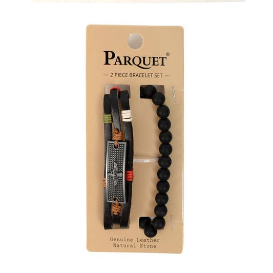 Leather & Natural Stone Two Pieces Bracelet Set Final Clearance
