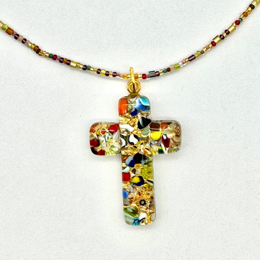 Men's Gold & Silver S.Steel CZ Cross Pendant With Chain