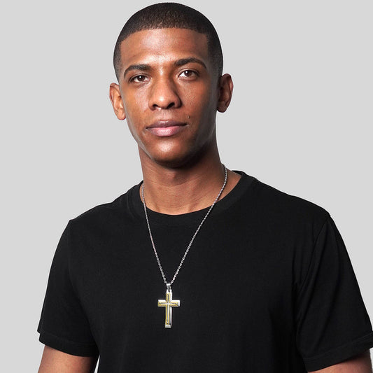Large St. Benedict Gold and Silver Cross Necklace - 24in-