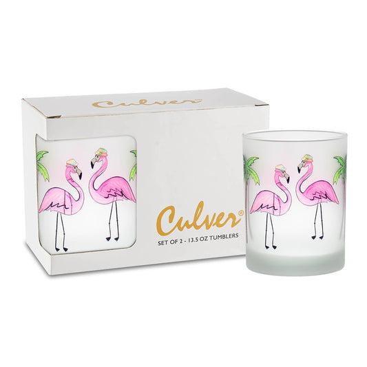 Frosted Flamingo Cocktail Glass Duo