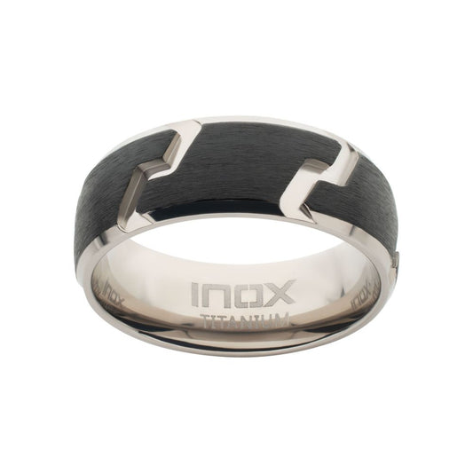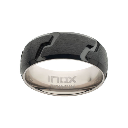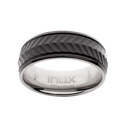Black IP Titanium Tread Pattern Ring with Half Sizes