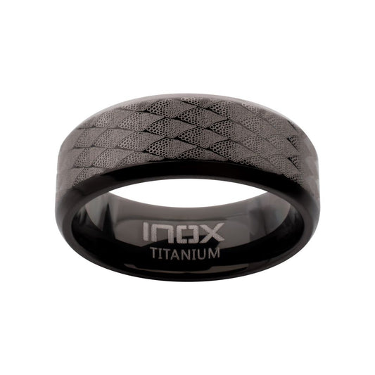 Black IP Titanium Etched Fishskin Comfort Fit Ring