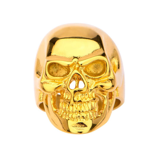 Gold IP High Polished Front Face Skull Ring