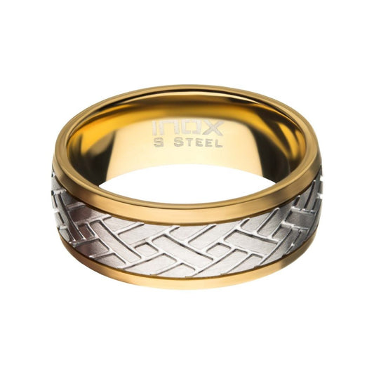 Gold IP Edge with Steel Weave Ring