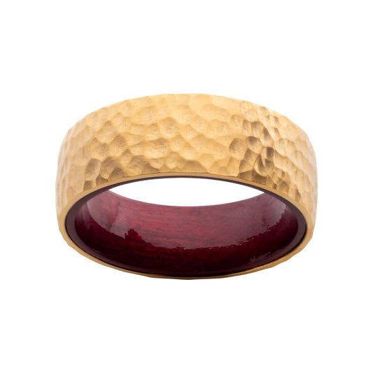 Gold IP Titanium & Redwood Matte Finish Hammered Comfort Fit Ring