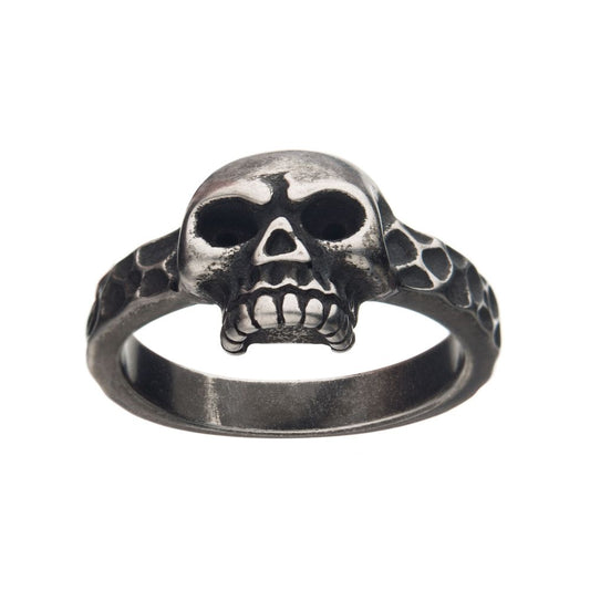 Oxidized Stainless Steel & Gold IP Skull Ring