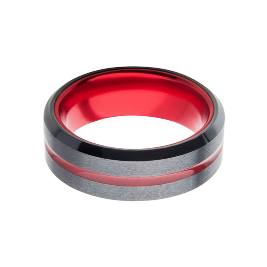 Red Aluminum Inlay Black IP Steel Beveled Comfort Fit Ring