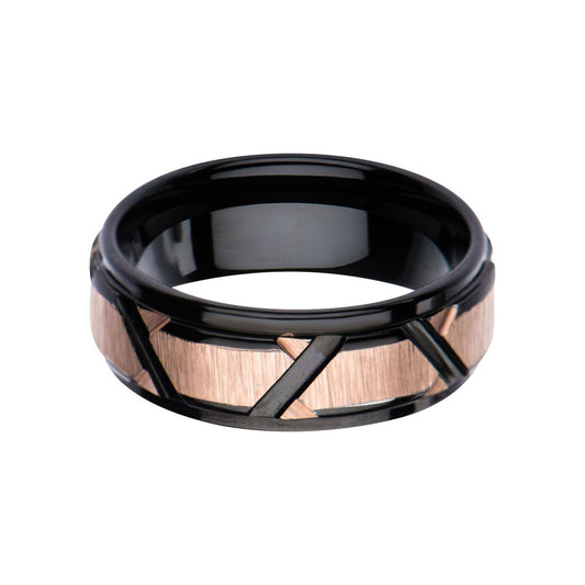 Rose Gold IP & Black IP Patterned Design Polished Ring