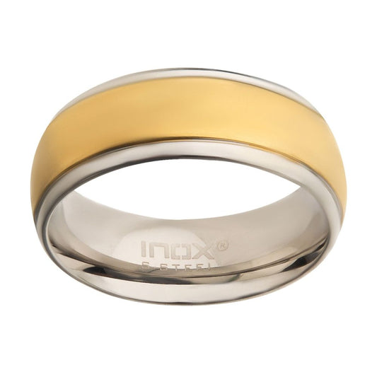 Gold PVD Plating Polished Steel Comfort-Fit Band with CZ's in Bead Channel Setting Ring