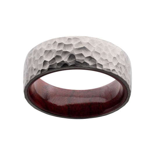 Titanium & Redwood Matte Finish Hammered Comfort Fit Ring