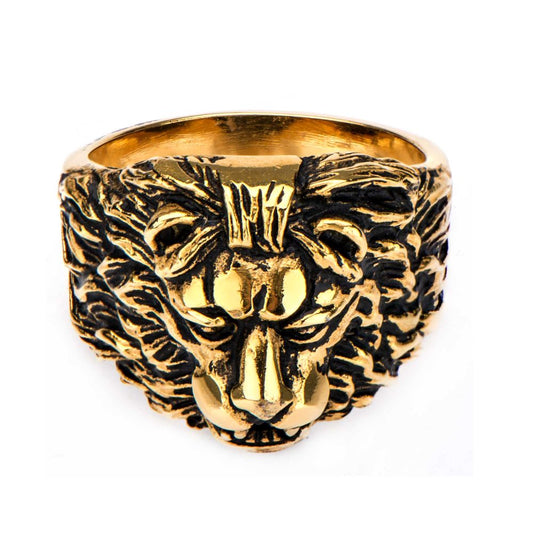 Stainless Steel Gold IP Lion Crest Ring