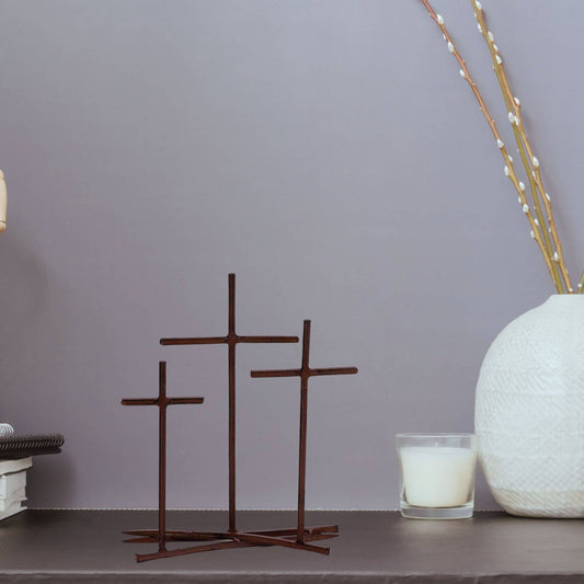 Tabletop Matte Black With Brown Resin Cross - Clearance