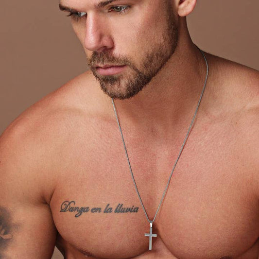 Large St Steel Cross Necklace 20"