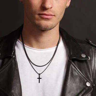 Black Rope Chain and Medium Black Cross - 24in / 26in-