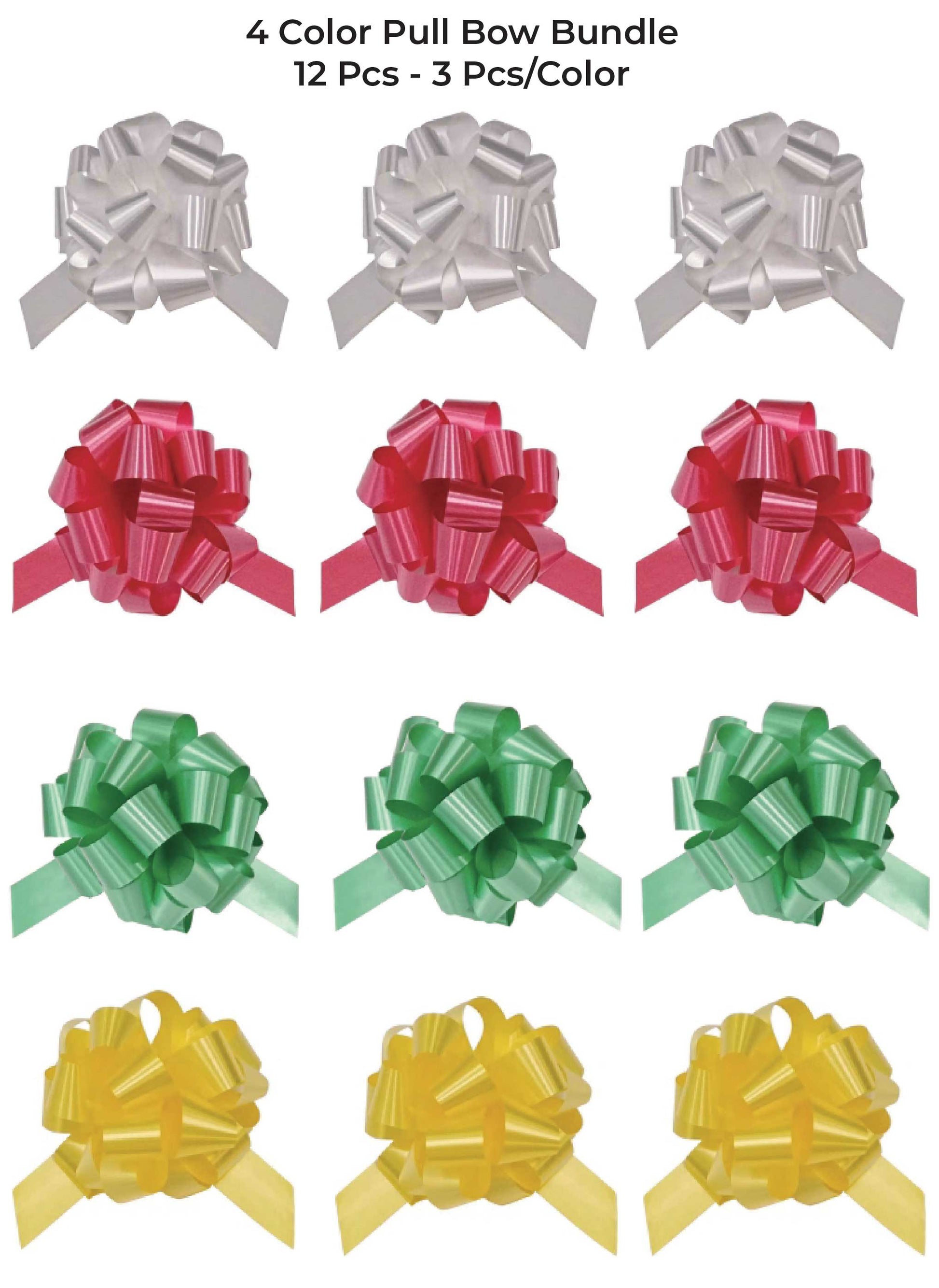 * The 12-piece bundle includes 4 pulls bows in red, green, yellow and white.