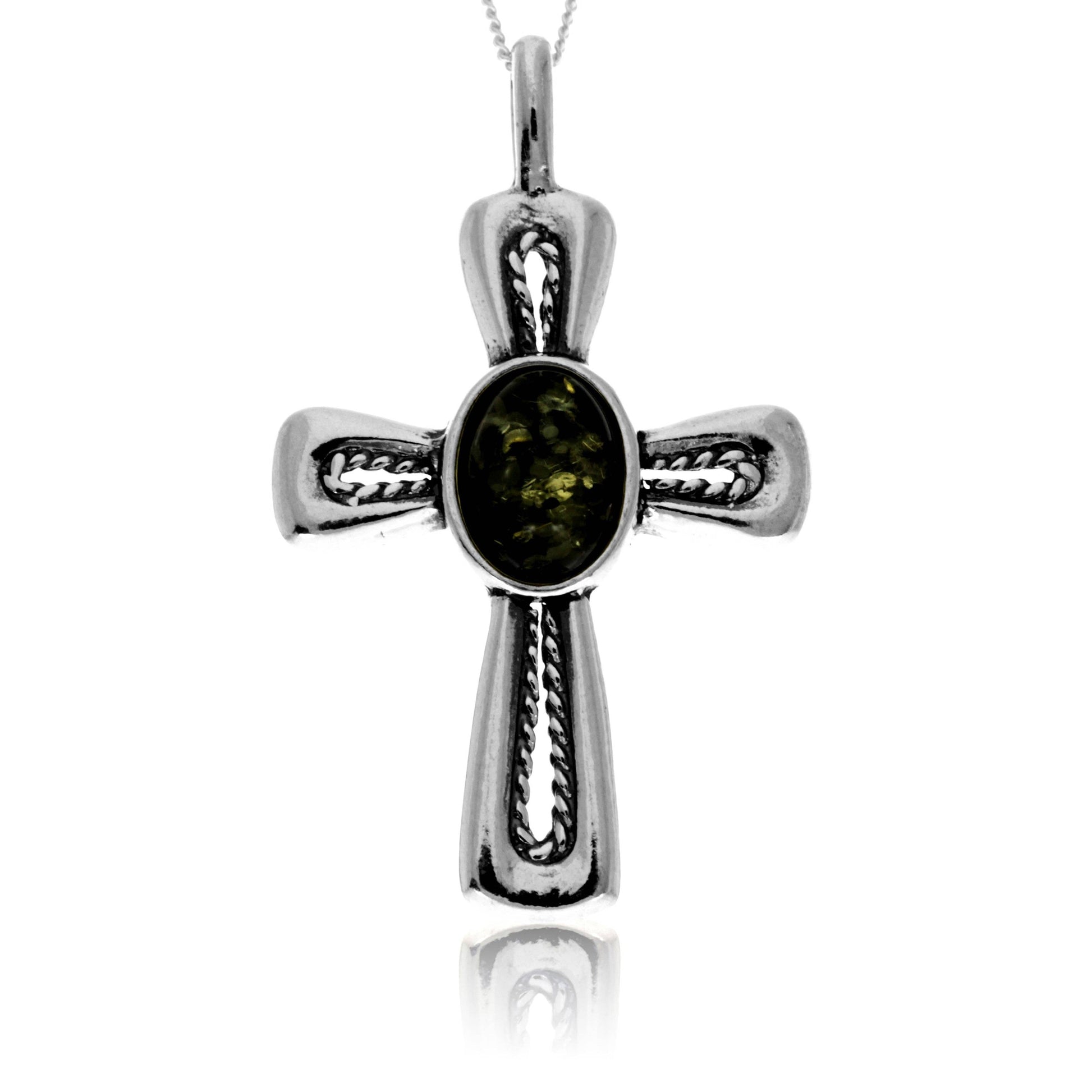 925 Steling Silver & Genuine Baltic Amber Celtic Cross Pendant
