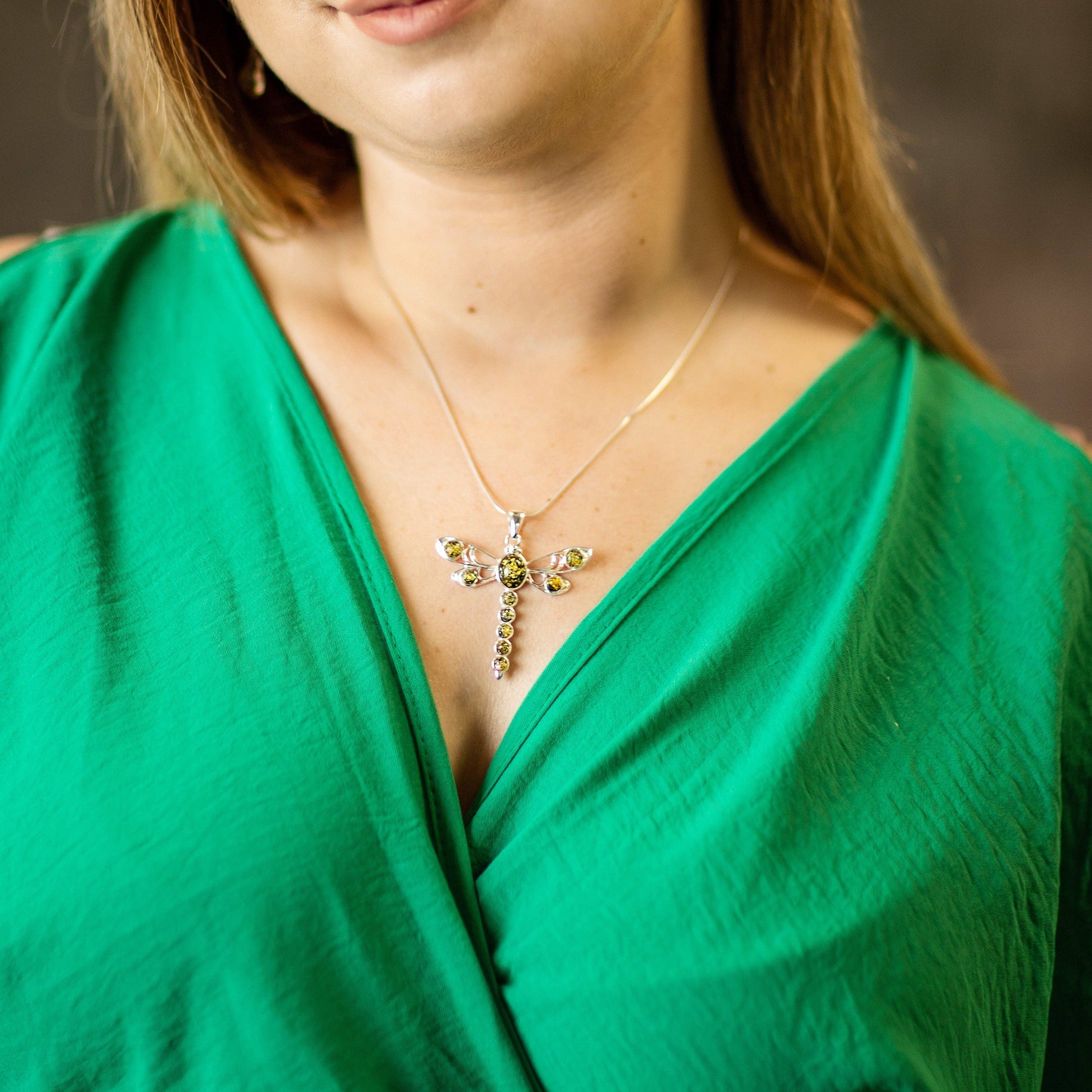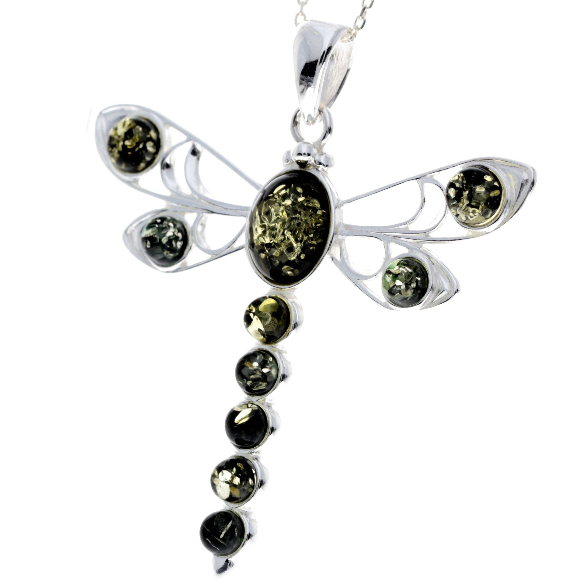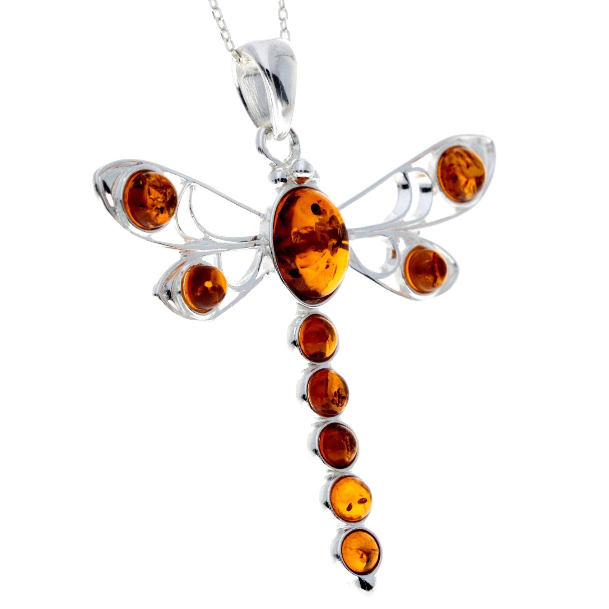 925 Sterling Silver & Baltic Amber Dragonfly Pendant