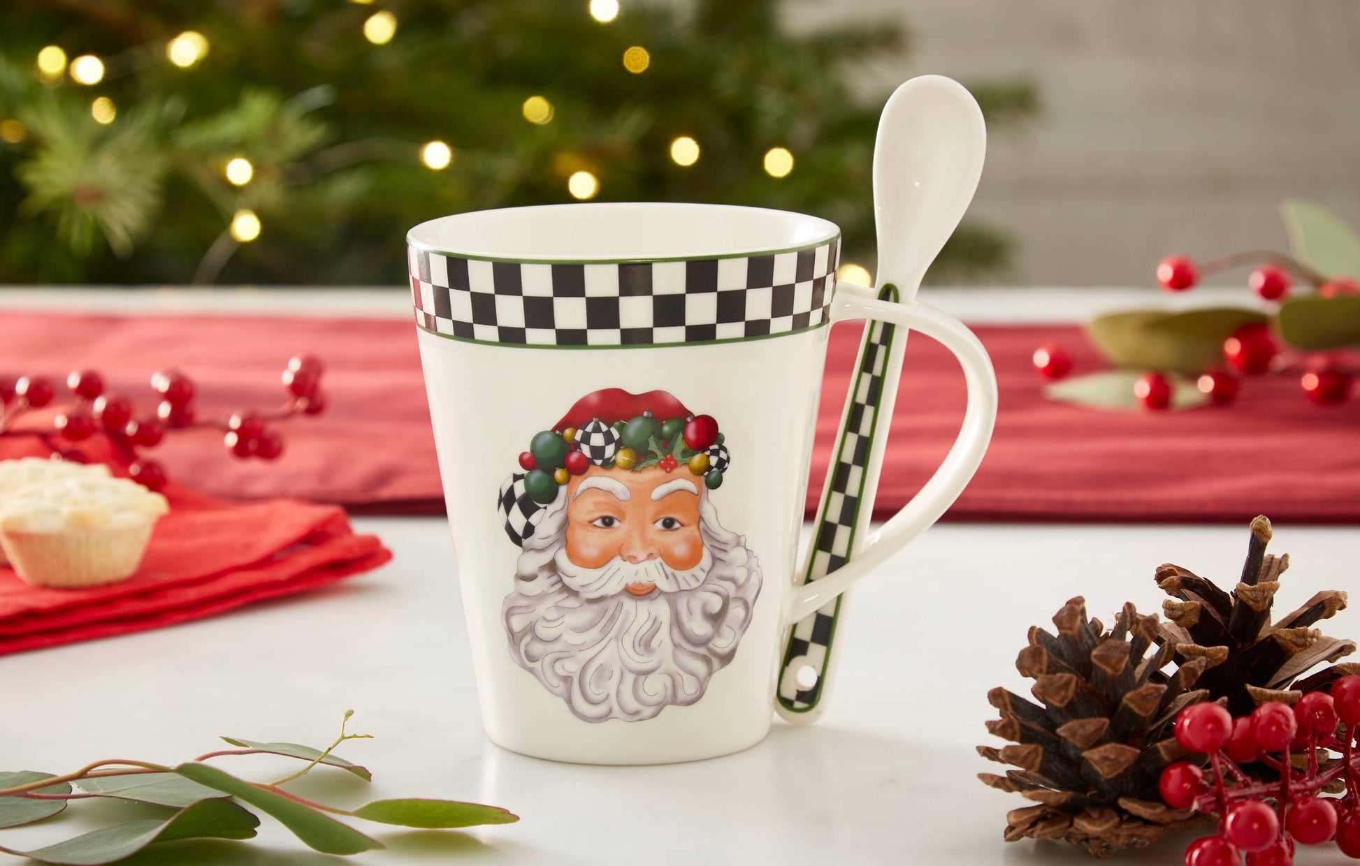 Black and White Christmas Mug and Spoon Set