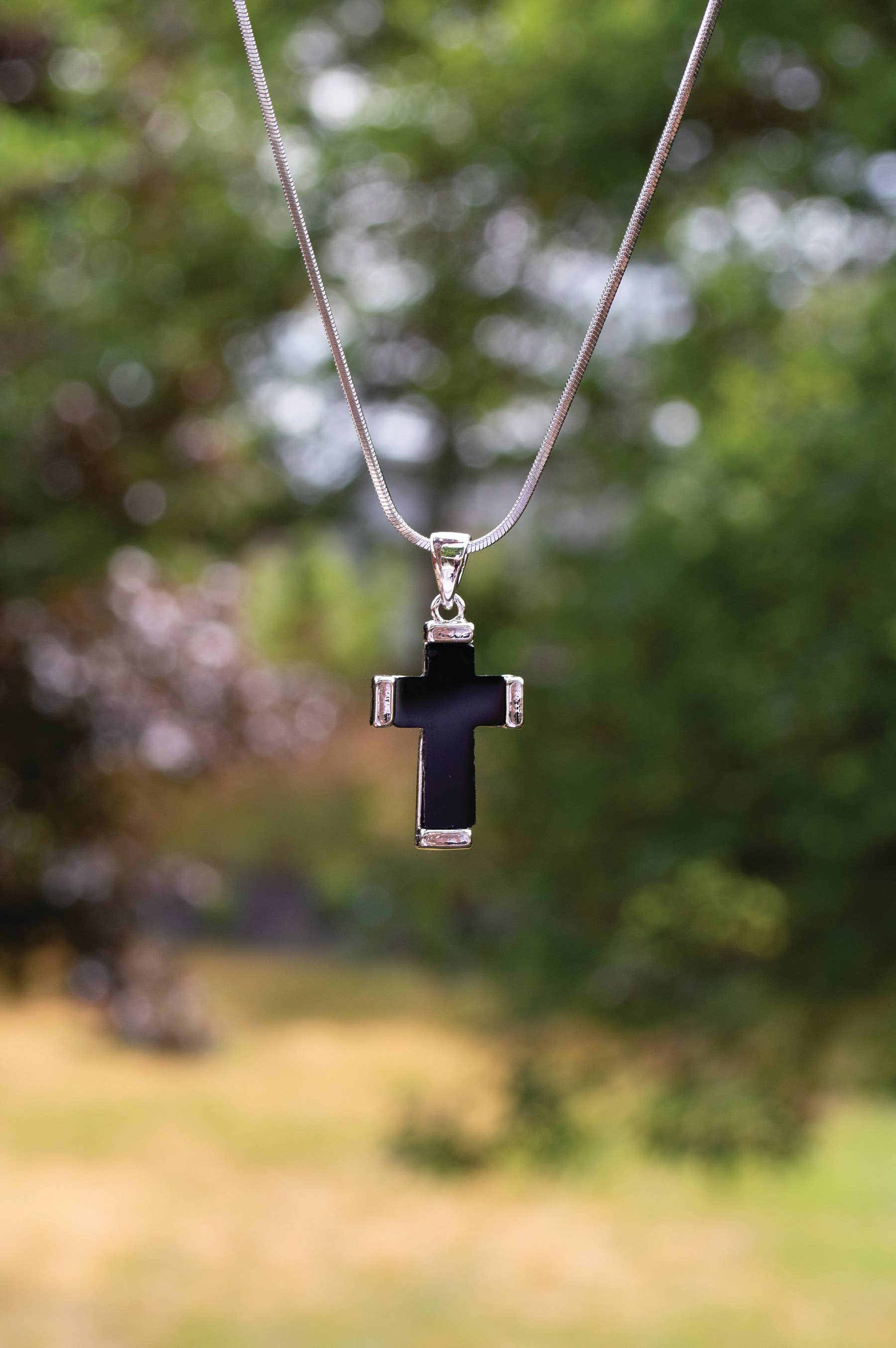 Cross Black & Silver Pendant necklace. 18" Clasp Closure.