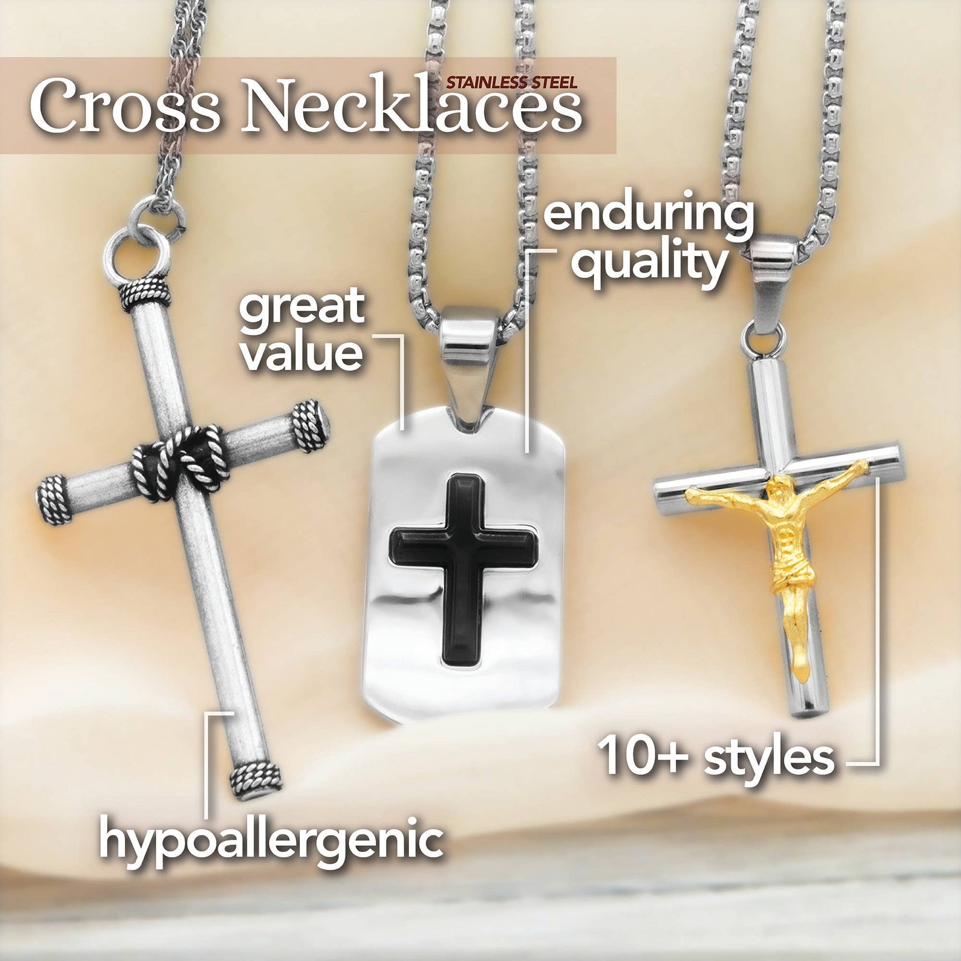 Crucifix Pendant Necklace Stainless Steel