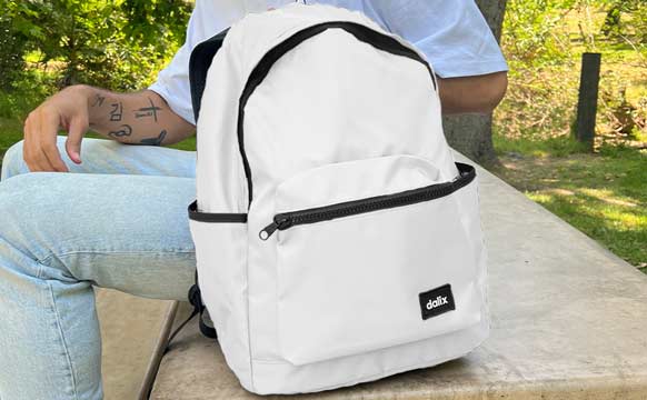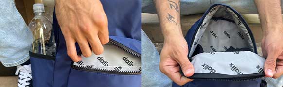 * Large main zippered compartment, front zippered pocket, two zippered side pockets