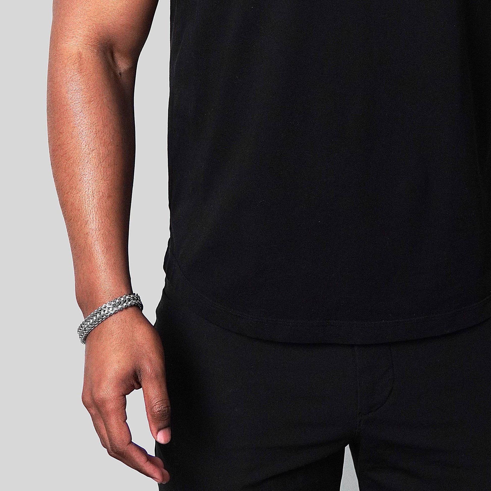 Impressive and bold this gleaming Invicta Jewelry Double Row Franco chain bracelet will become your favorite statement piece. The stainless steel construction will make this piece durable and your favorite go to. The bracelet has a length of 8.75 inches and a width of 9/16 inches. The layered chain style bracelet wraps around your wrist and secures with a slide insert clasp.
