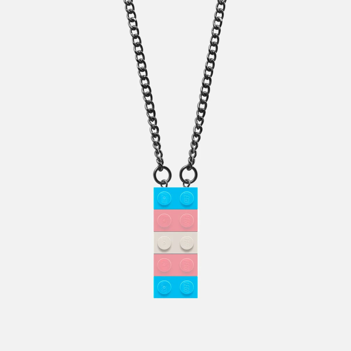 LEGO-Trans Flag Necklace transforms genuine LEGO bricks into a handcrafted Tran Flag, creating a whimsical yet wearable art piece.
