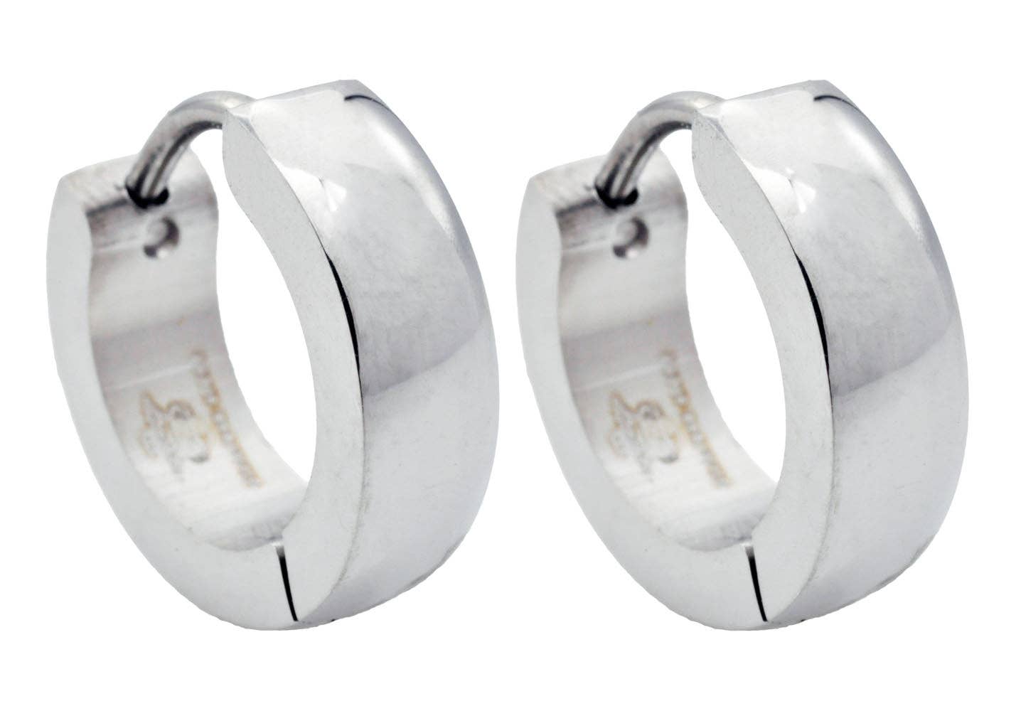 Men's Polished Stainless Steel 14mm Hoop Earrings