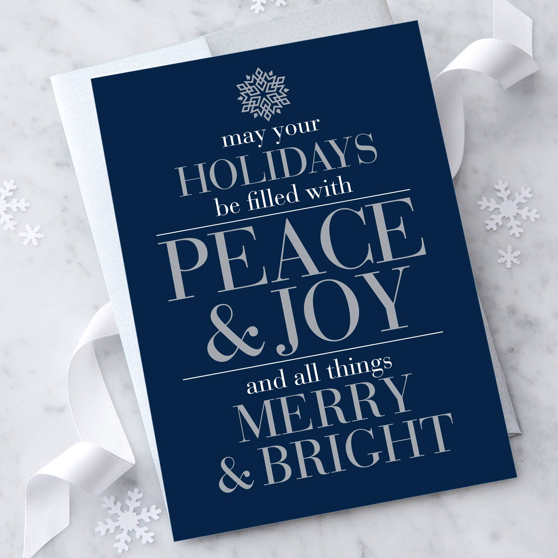 Our elegant "Peace & Joy" Holiday Greeting Card expresses a beautiful holiday sentiment: