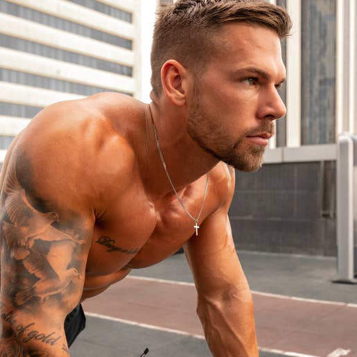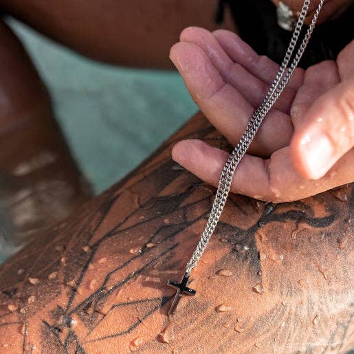 Note that how where the cross will rest on your chest depends on your height and neck thickness.